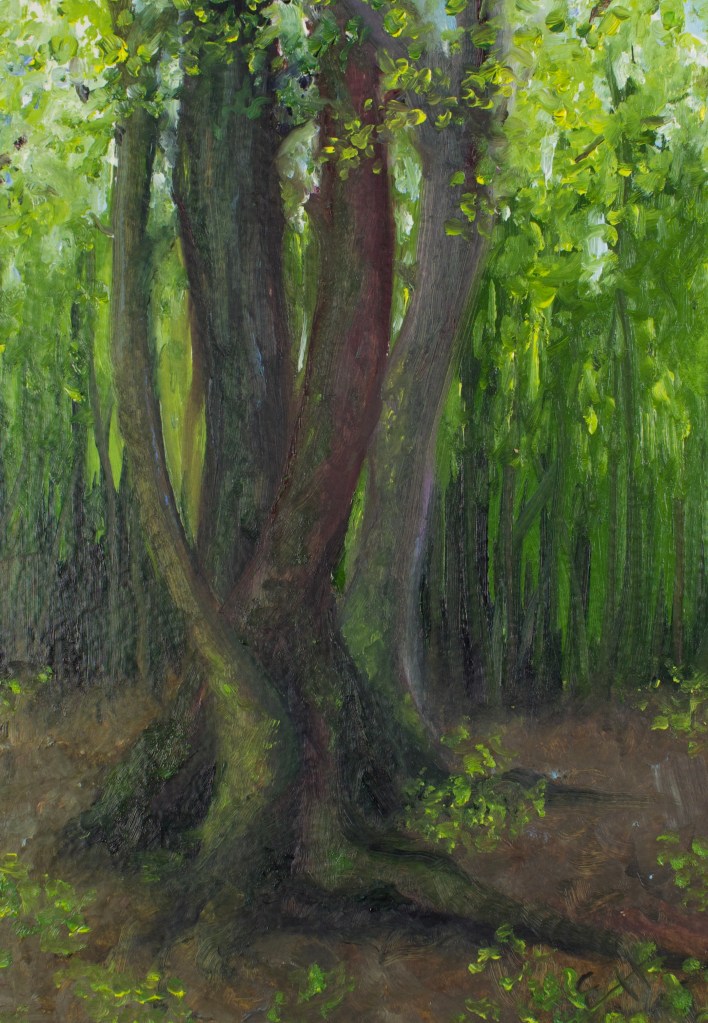Last, but not least, the copper panel. Aaah, I love copper! That glow is so beautiful! Because it’s so beautiful, many artists choose to leave a fair bit of it showing. However, I personally like to paint thinly over it- just enough to knock off the shine a bit while still letting it glow through. I have seen artists paint in an alla prima style on copper, but it’s slick…SO slick! It’s hard to get the paint to adhere and the first layer will likely be streaky. Because of this, I like to work in thin layers, letting each layer dry before moving onto the next, but that’s just me.