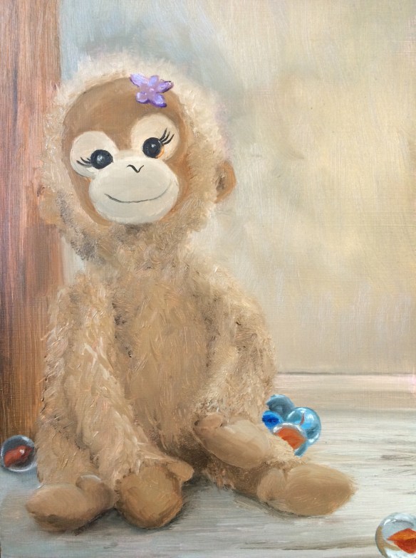 This is Baby Monkey. My little girl’s best buddy. Her constant companion for the better part of her life. So loved is Baby Monkey that I worried about her safety, constantly checking to see that she hadn’t been left behind at stores, hotels, airports. The perfect size to clutch in a chubby little 3-year-old fist, she went everywhere with us.