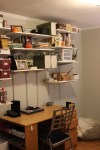 Here’s my newly refreshed home studio. Cool gray walls, lots of shelves, aaah… much better.